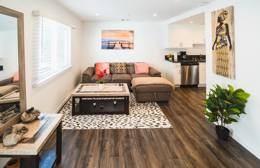 The 1-room Nice And Close To Downtown 1 Bedroom Sleeps 4 apartment is located in Hollywood with some of the most famous celebrity homes, landmarks & a framed souvenir photo, and Vermont/Beverly tube station is only 850 metres away.